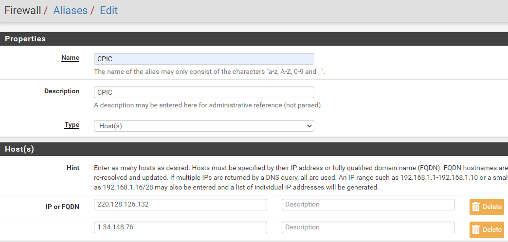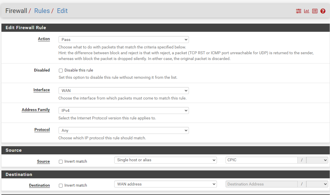 存取限制設定開放WAN ADDRESS 給CPIC