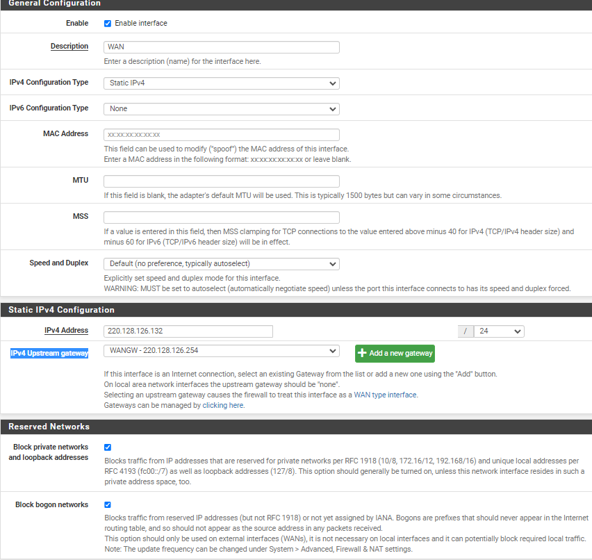 Interfaces \ WAN